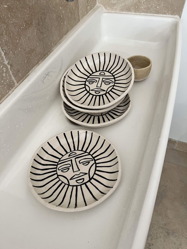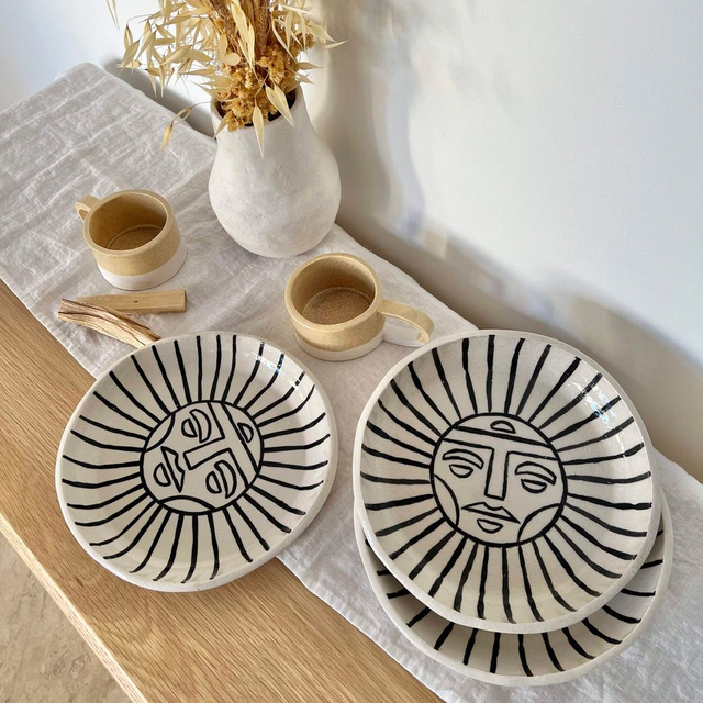 ❂ Assiette creuse ø20cm. Grès naturel émaillé, dessin noir.