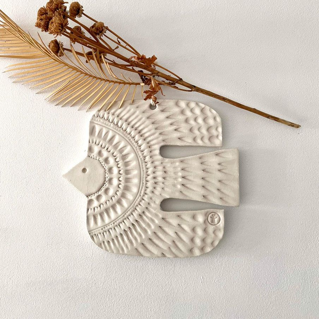 ᯽ Plaque décorative en forme d'oiseau à suspendre. Dimensions 25x23cm environ. Grès naturel gravé, émail brillant.