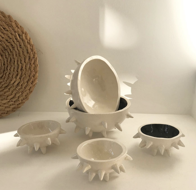 𐩘 Petite coupe à picots de Ø 10cm environ. Grès naturel, émail brillant.