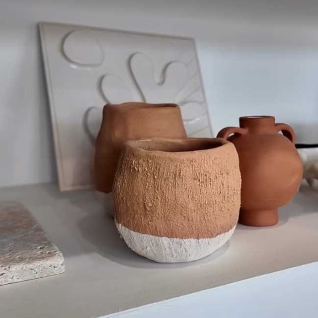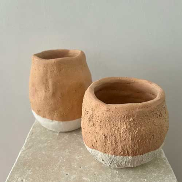 ᯽ Petite vase de Ø 10cm environ et 13-15 cm environ. Grès naturel non lissé, émail terracotta sablé.