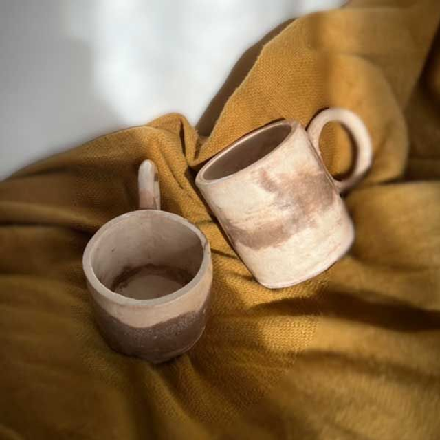 ᯽ Grande tasse/mug de 9 cm de largeur et 8-10cm de hauteur environ. Terres mêlées (Grès naturel et marron), émail brillant.