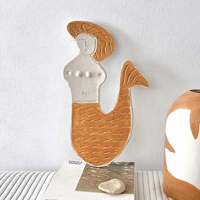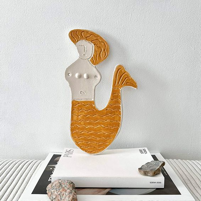 Plaque décorative à poser ou à accrocher de 29x17cm environ. Grès naturel et engobe couleur ocre/caramel, émail brillant.
